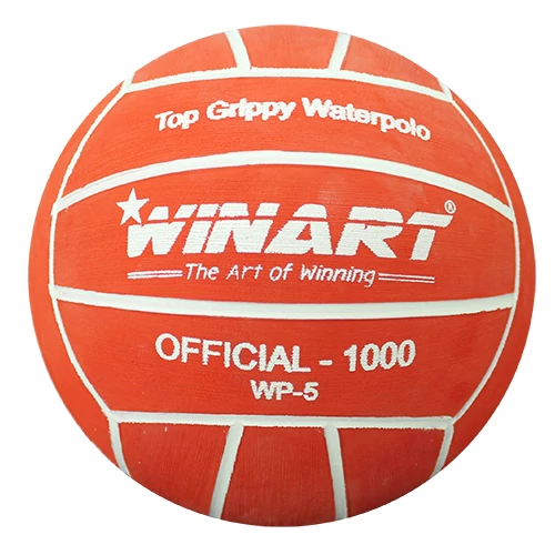 Утежнена водна топка с 18 панела, размер 5 (обиколка: 68-71 см, 1000 грама). Дълготраен гумиран материал с набраздена повърхност. В червен цвят.