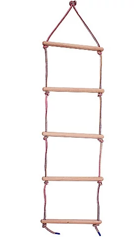 2-метрово дървено стълбено въже с дървени стъпала през 30 см, с PPtex въже. Може да се окачва на височина до макс. 2,5 м! Унгарски продукт!