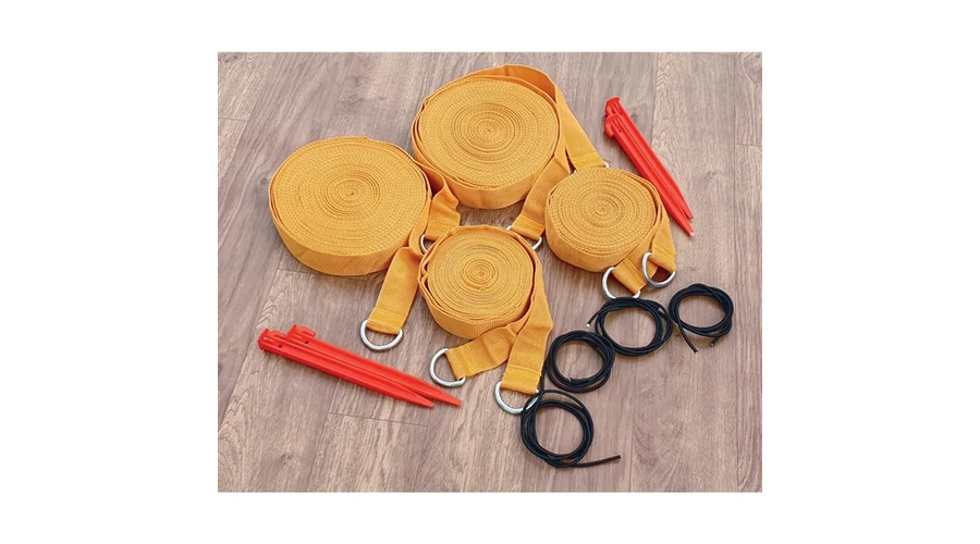 Ограничителни линии за волейбол Vinex от 40 мм широка полипропиленова лента, с D-катарама в двата края. Включва 4 бр. анкера и 4 бр. еластични bungee въжета с фиксиране за закрепване на ограничителните линии. Тези гранични линии 16 m x 8 m са лесни за използване както за игра на пясък, така и на трева.