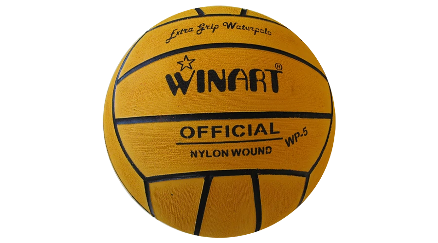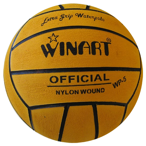 Топка за водна топка, размер 5 (обиколка: 68–71 см, тегло: 400–450 грама), за деца. Основният материал е дълготрайна гума с релефна повърхност. Предлага се в жълт цвят.