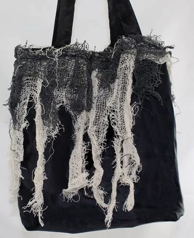 Дължина с дръжката 49 см, без дръжка 31 см. Ширината на чантата е 27 см. Материал: коприна, памук.